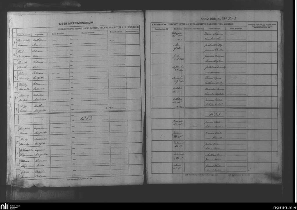 Duleek; County of Meath; Diocese of Meath. Marriages, Feb. 1852 to May 1853