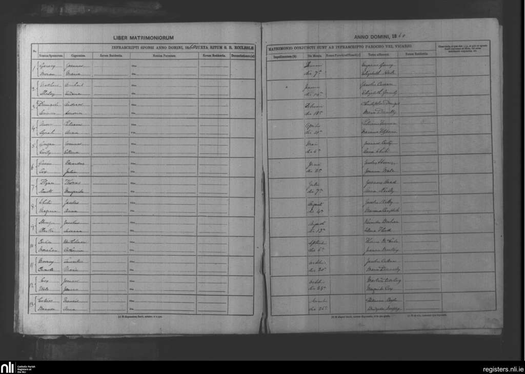 Duleek; County of Meath; Diocese of Meath. Marriages, Jan. 1860 to Nov. 1860