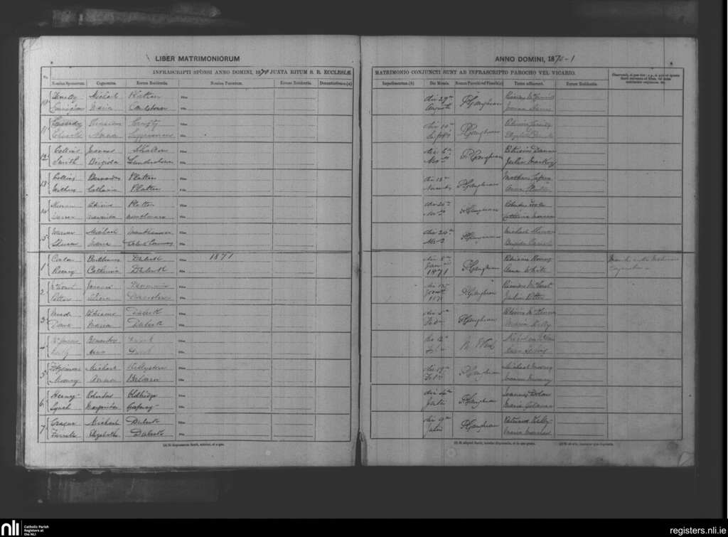 Duleek; County of Meath; Diocese of Meath. Marriages, Aug. 1870 to July 1871