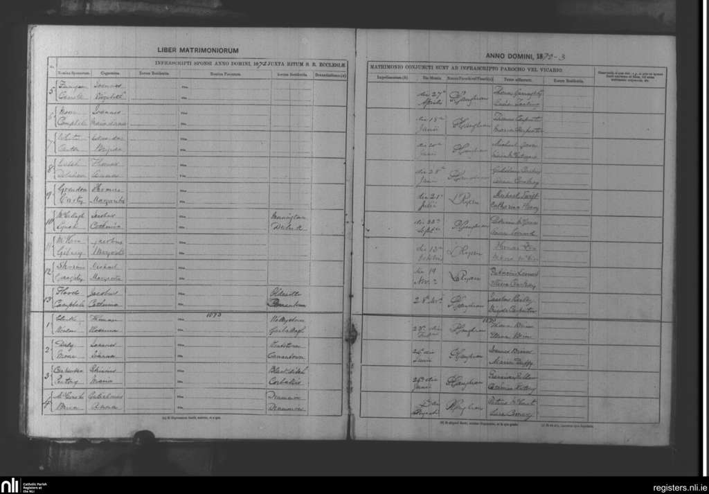 Duleek; County of Meath; Diocese of Meath. Marriages, Apr. 1872 to Aug. 1873