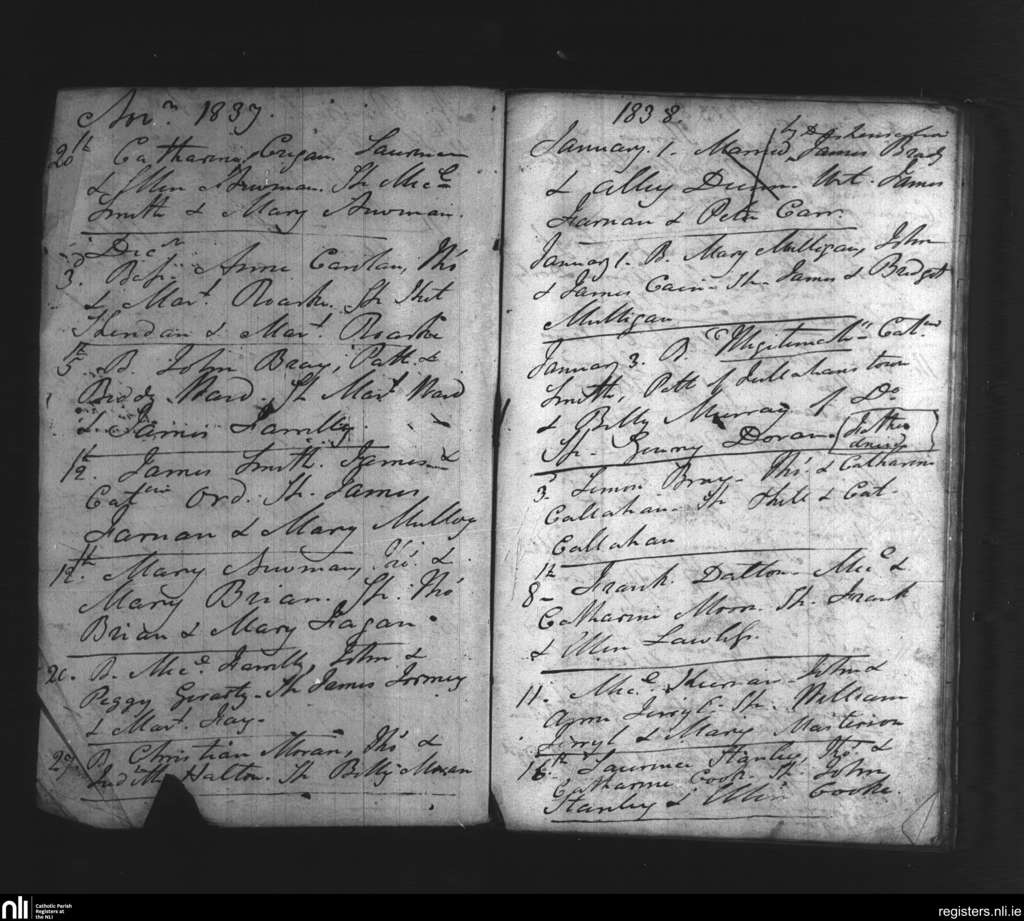 Dunderry; County of Meath; Diocese of Meath. Baptisms, Nov. 1837 to Jan. 1838