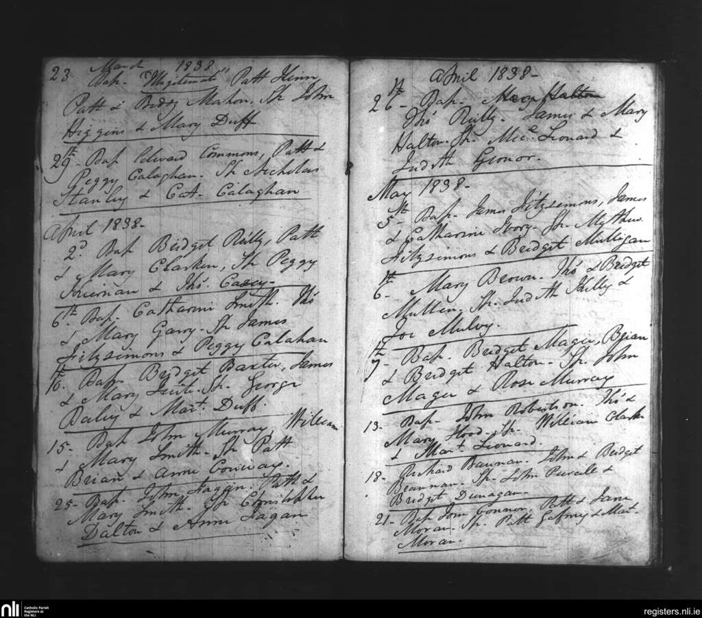 Dunderry; County of Meath; Diocese of Meath. Baptisms, Mar. 1838 to May 1838
