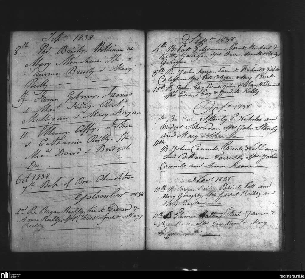 Dunderry; County of Meath; Diocese of Meath. Baptisms, Sep. 1838 to Nov. 1838