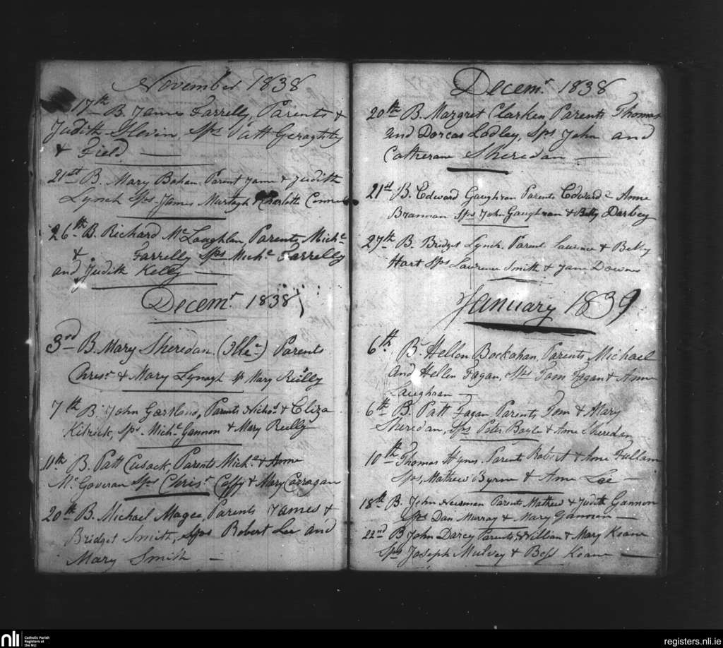 Dunderry; County of Meath; Diocese of Meath. Baptisms, Nov. 1838 to Jan. 1839