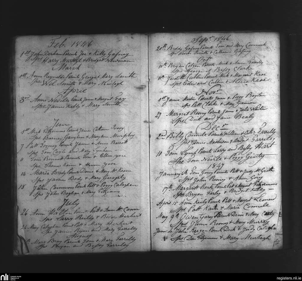 Dunderry; County of Meath; Diocese of Meath. Baptisms, Feb. 1846 to June 1847