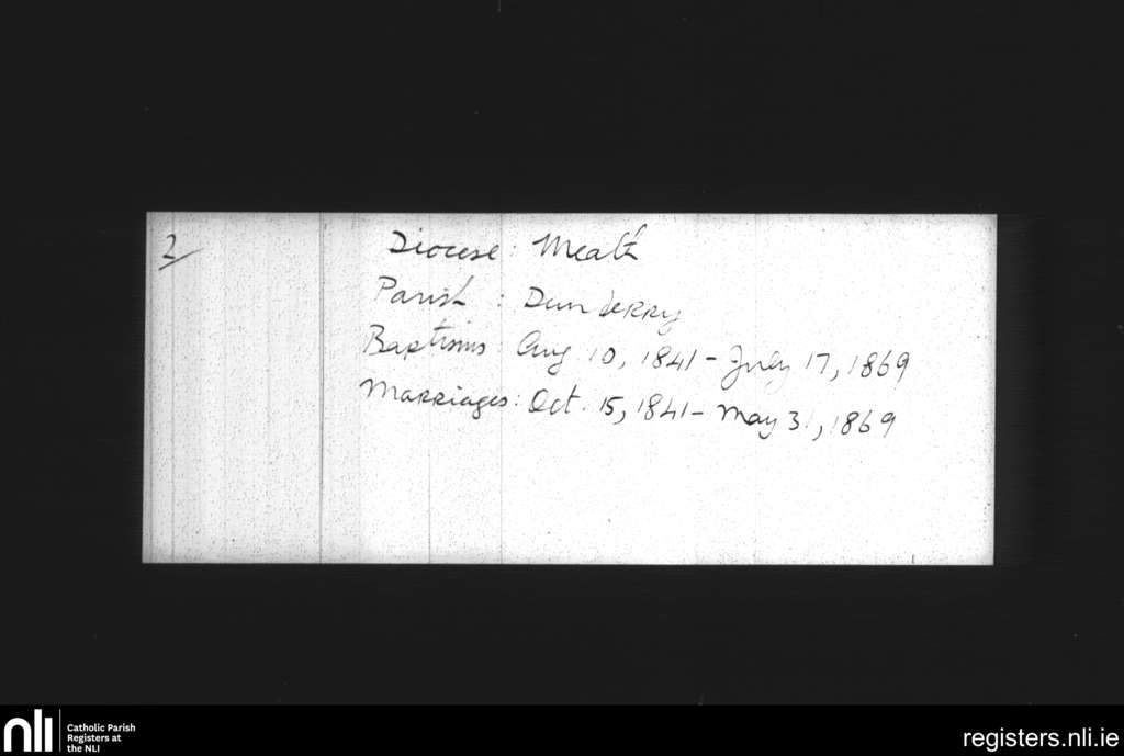 Dunderry; County of Meath; Diocese of Meath. Baptisms, Marriages