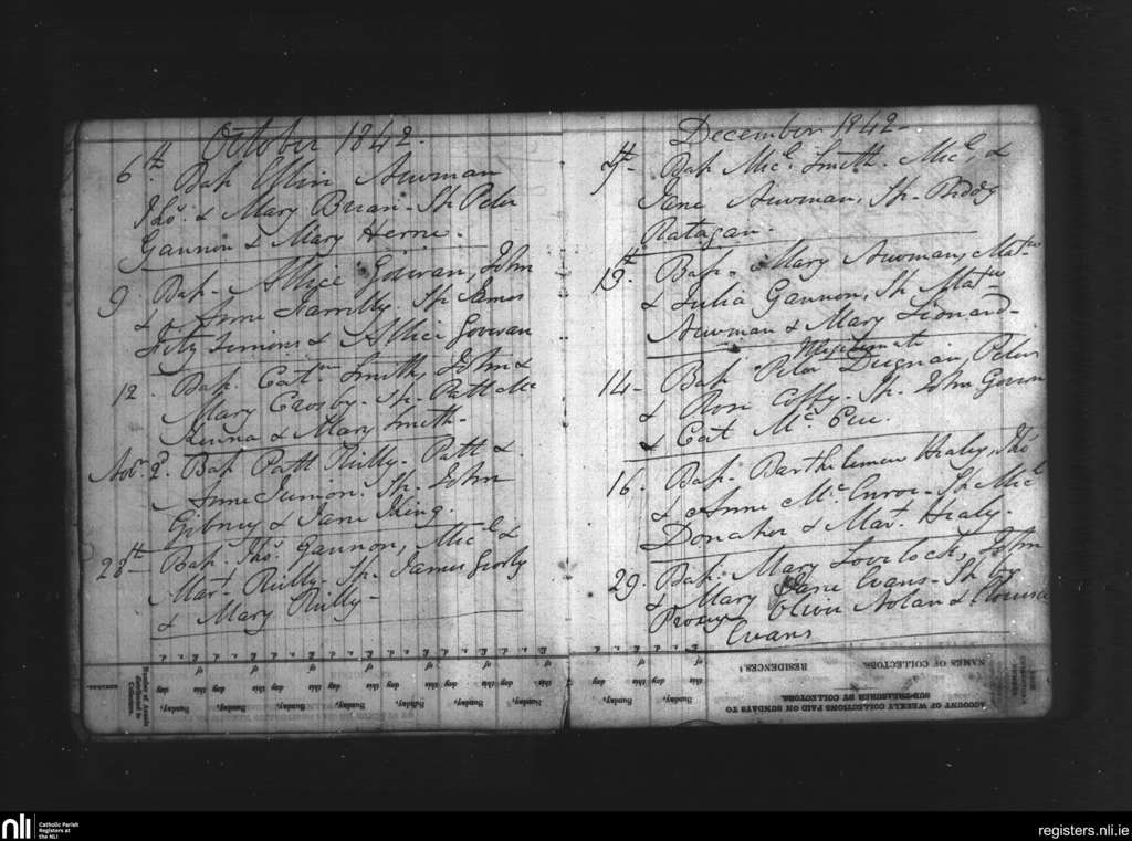Dunderry; County of Meath; Diocese of Meath. Baptisms, Oct. 1842 to Dec. 1842