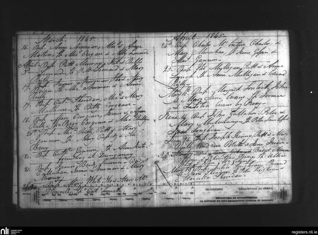 Dunderry; County of Meath; Diocese of Meath. Baptisms, Mar. 1845 to June 1845