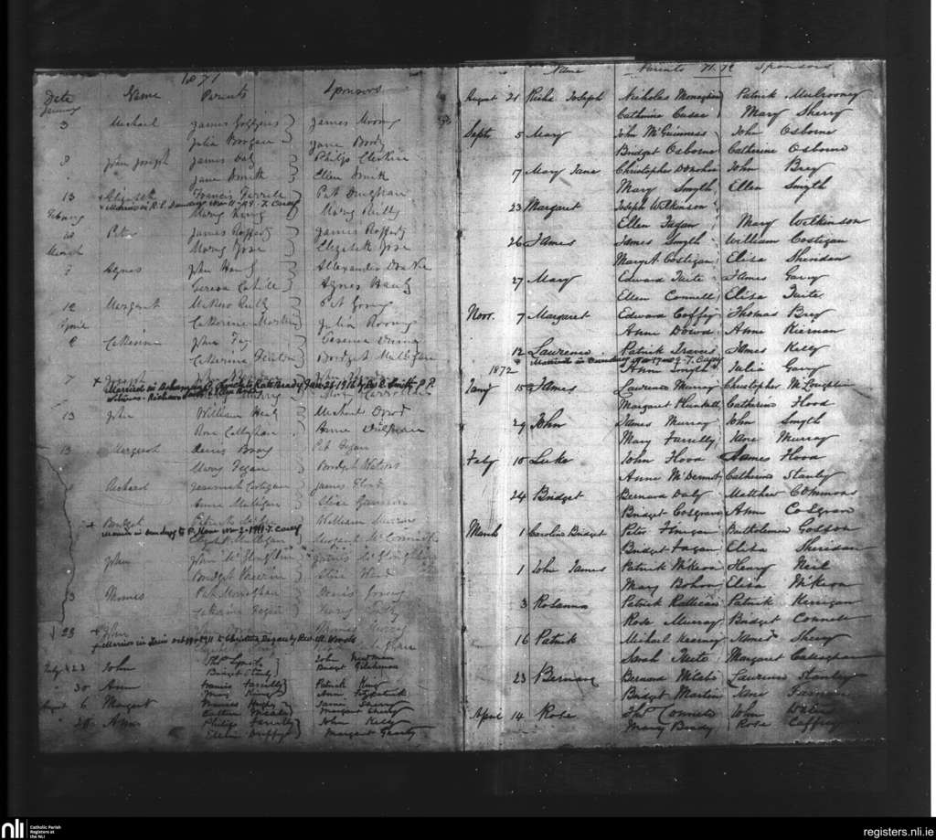 Dunderry; County of Meath; Diocese of Meath. Baptisms, Jan. 1871 to Apr. 1872