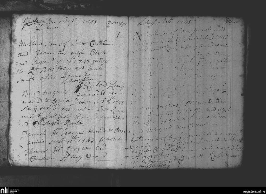 Killeen; County of Meath; Diocese of Meath. Baptisms, Marriages, July 1743 to Sep. 1743