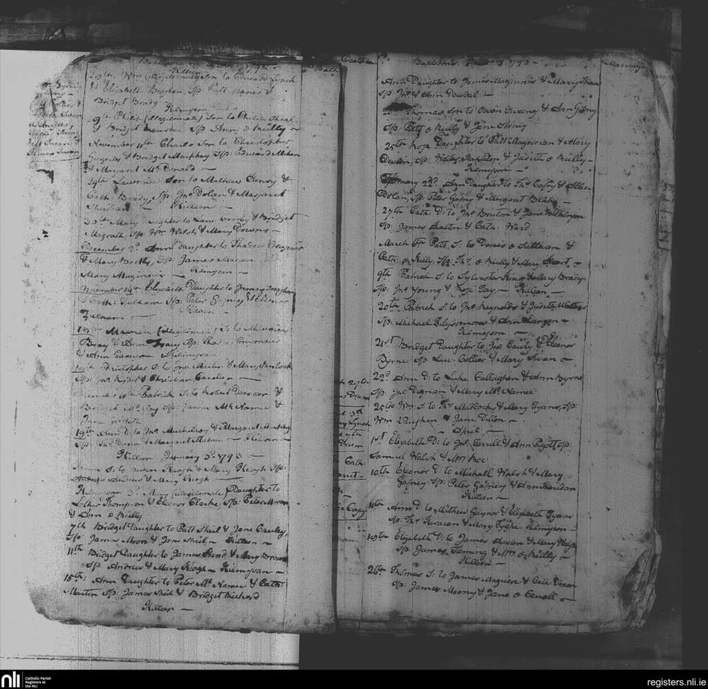Killeen; County of Meath; Diocese of Meath. Baptisms, Marriages, Deaths, Oct. 1792 to Apr. 1793