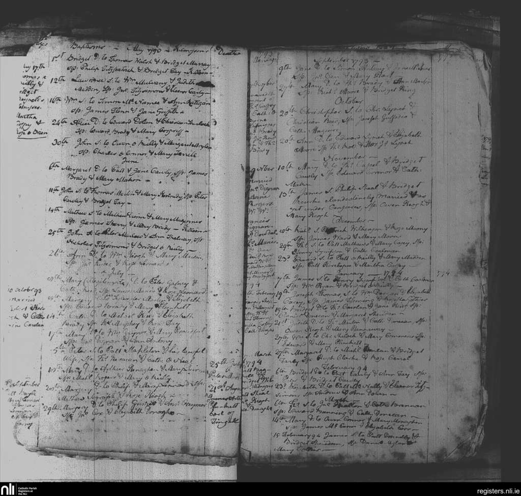 Killeen; County of Meath; Diocese of Meath. Baptisms, Marriages, Deaths, May 1793 to Mar. 1794
