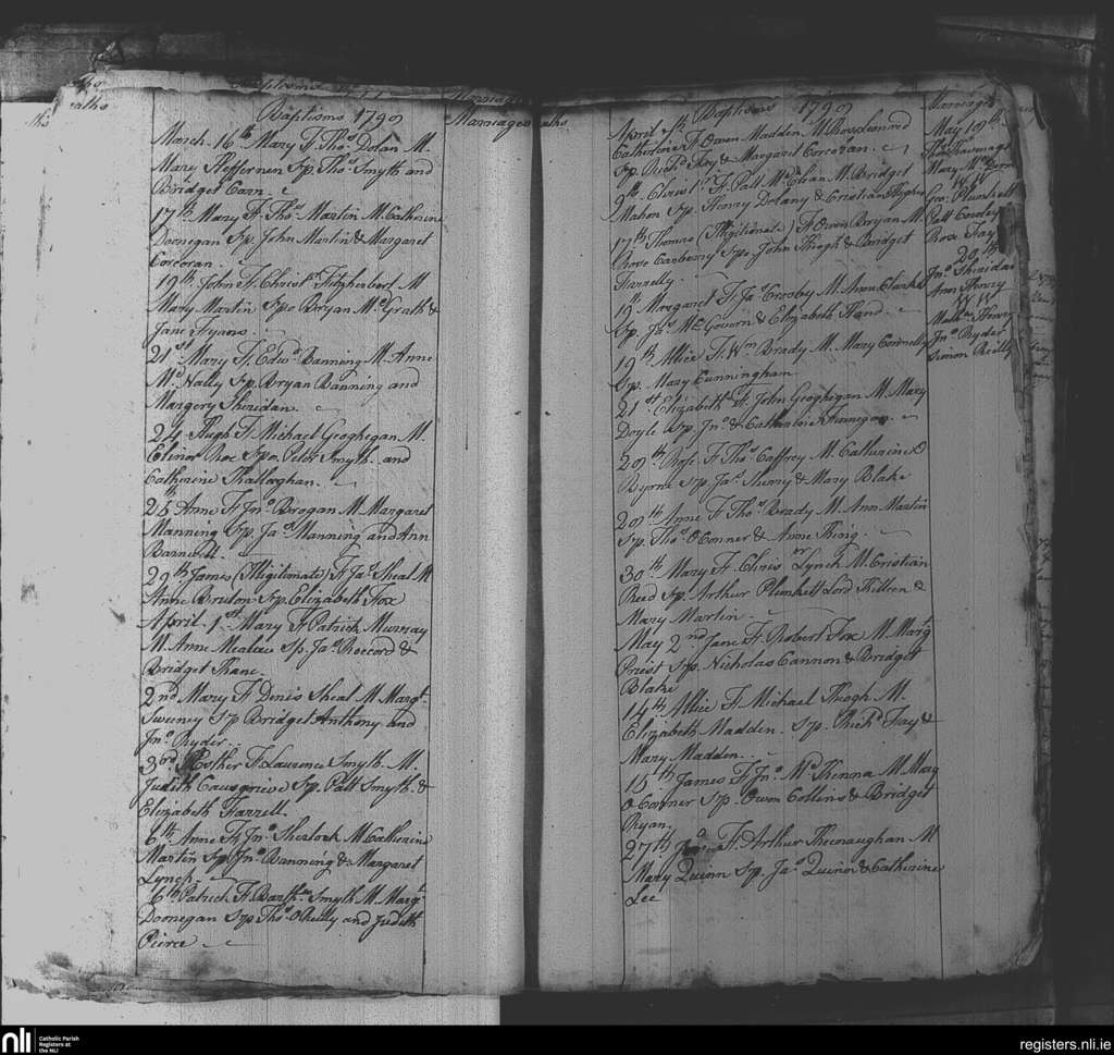 Killeen; County of Meath; Diocese of Meath. Baptisms, Marriages, Deaths, Mar. 1798 to May 1798