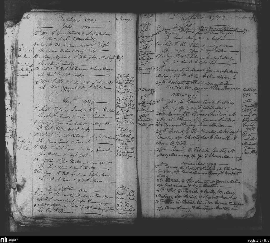Killeen; County of Meath; Diocese of Meath. Baptisms, Marriages, Deaths, July 1799 to Nov. 1799