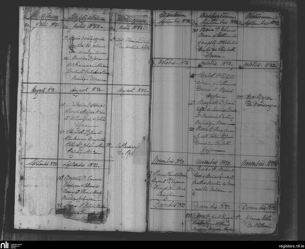 Killeen; County of Meath; Diocese of Meath. Baptisms, Marriages, Deaths, July 1832 to Dec. 1832
