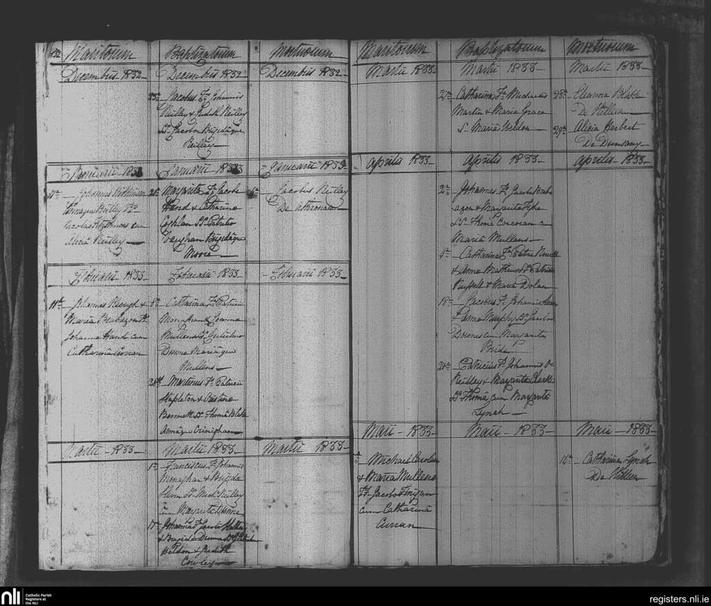 Killeen; County of Meath; Diocese of Meath. Baptisms, Marriages, Deaths, Dec. 1832 to May 1833
