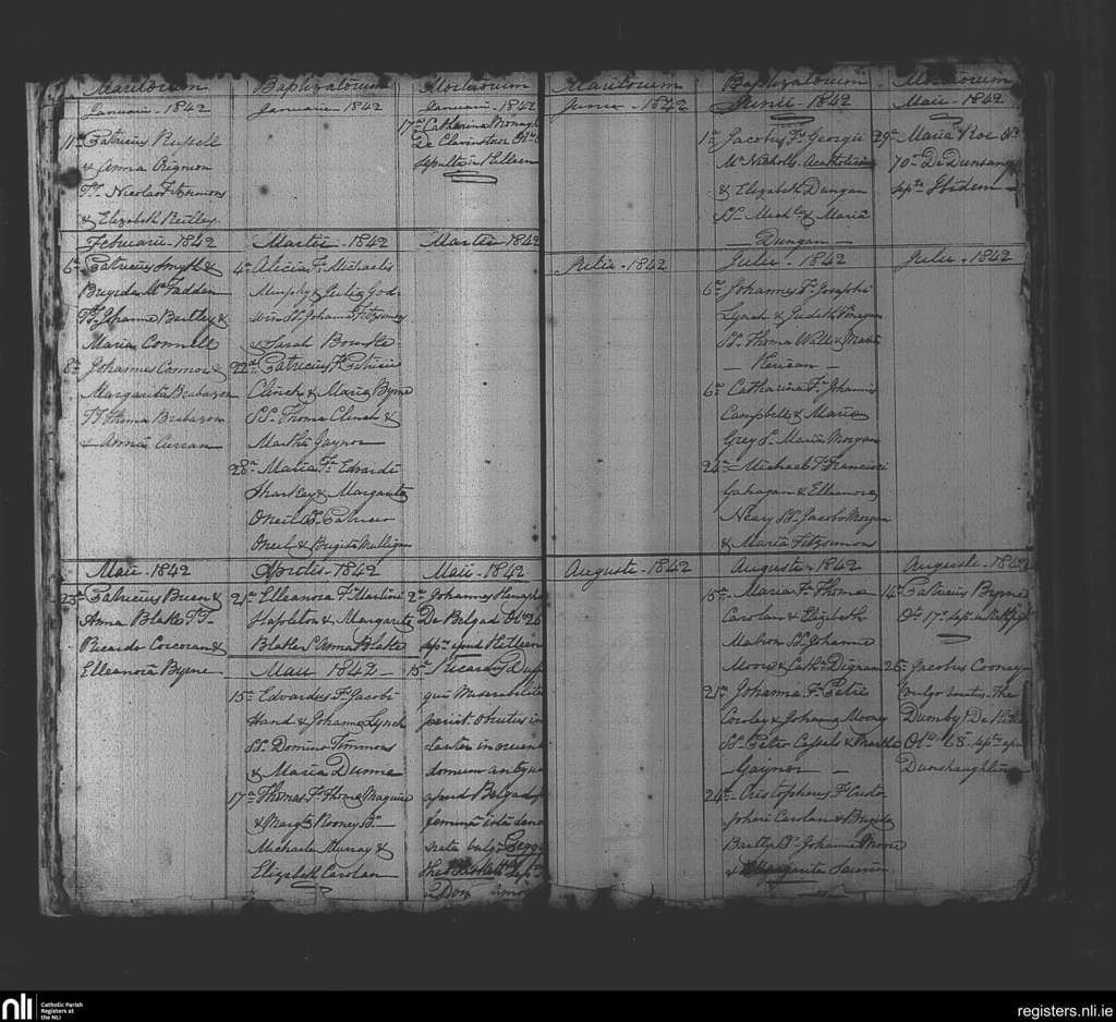 Killeen; County of Meath; Diocese of Meath. Baptisms, Marriages, Deaths, Jan. 1842 to Aug. 1842