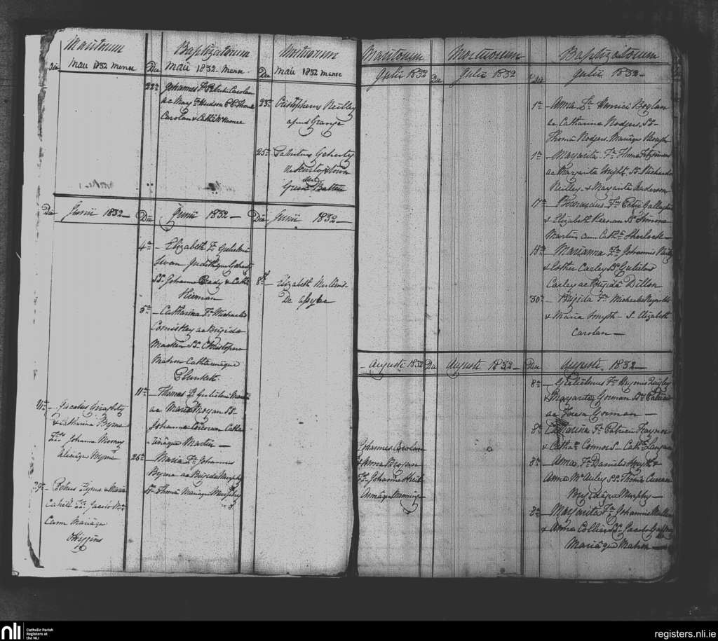 Killeen; County of Meath; Diocese of Meath. Baptisms, Marriages, Deaths, May 1832 to Aug. 1832