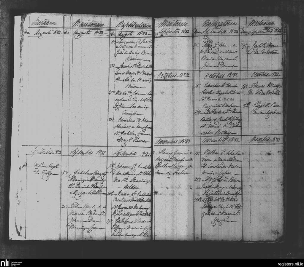 Killeen; County of Meath; Diocese of Meath. Baptisms, Marriages, Deaths, Aug. 1832 to Nov. 1832