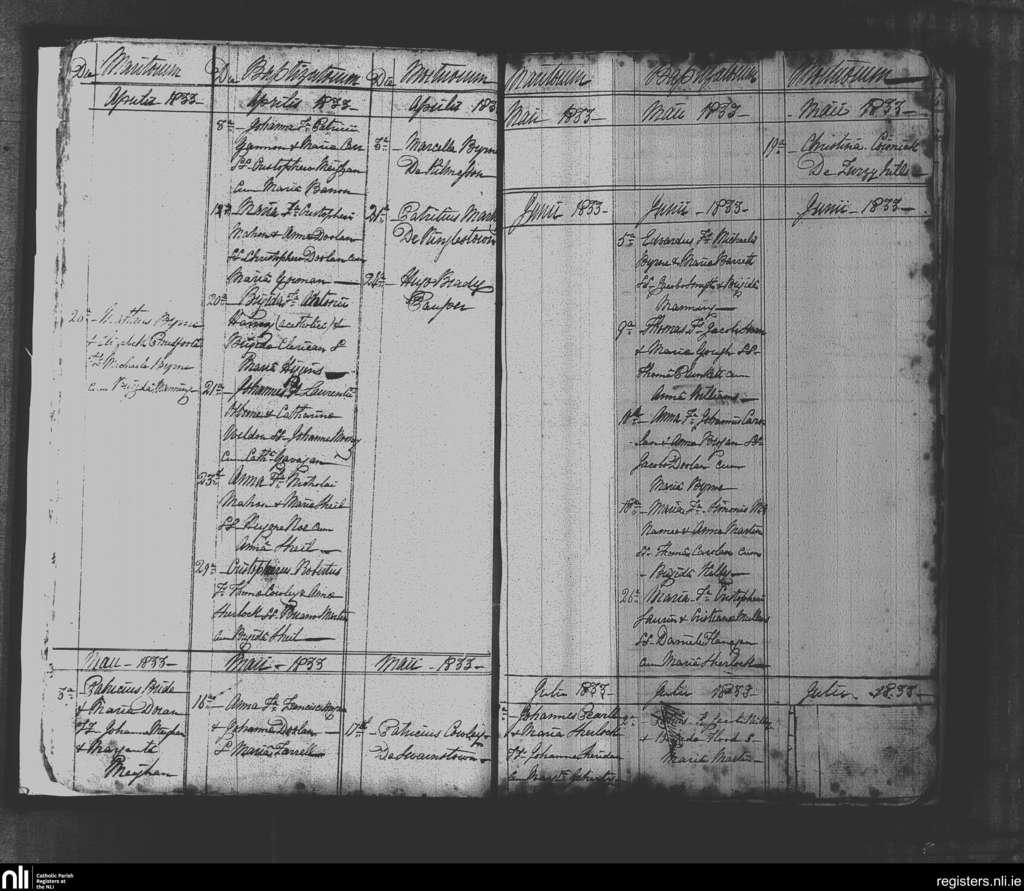 Killeen; County of Meath; Diocese of Meath. Baptisms, Marriages, Deaths, Apr. 1833 to July 1833