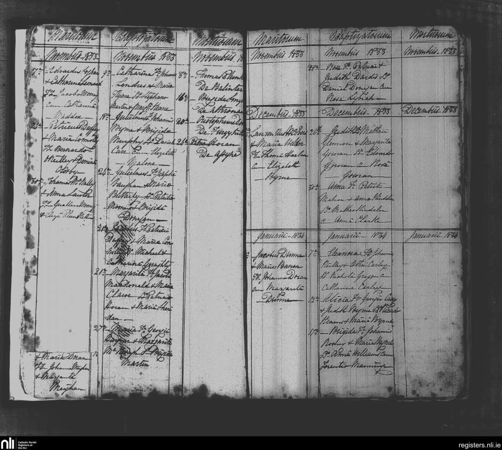 Killeen; County of Meath; Diocese of Meath. Baptisms, Marriages, Deaths, Nov. 1833 to Jan. 1834