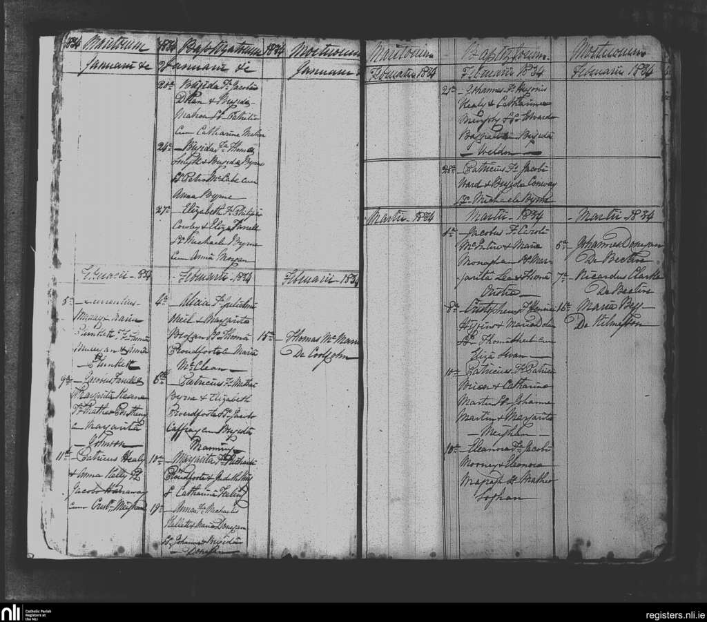 Killeen; County of Meath; Diocese of Meath. Baptisms, Marriages, Deaths, Jan. 1834 to Mar. 1834