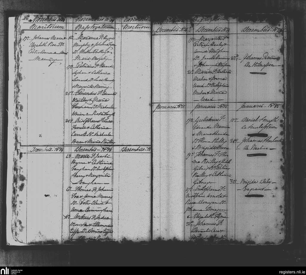 Killeen; County of Meath; Diocese of Meath. Baptisms, Marriages, Deaths, Nov. 1834 to Jan. 1835