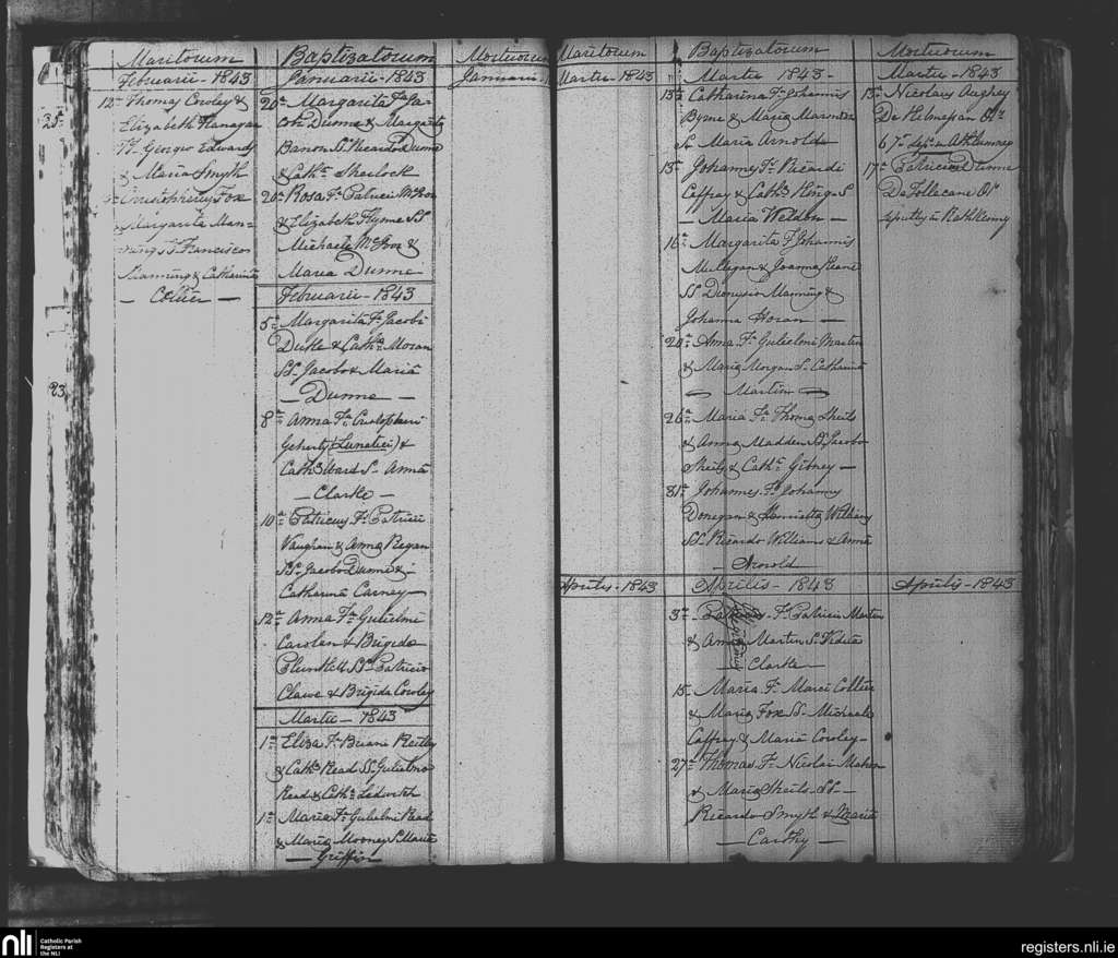Killeen; County of Meath; Diocese of Meath. Baptisms, Marriages, Deaths, Jan. 1843 to Apr. 1843