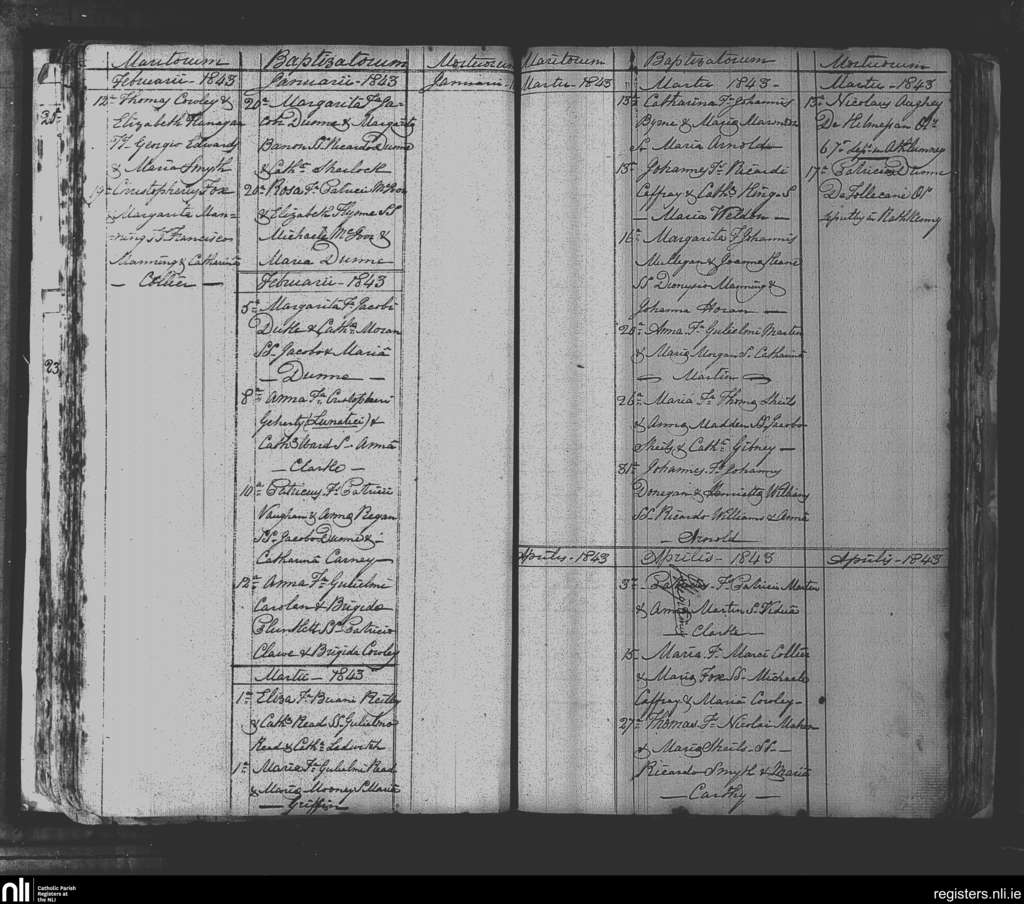 Killeen; County of Meath; Diocese of Meath. Baptisms, Marriages, Deaths, Jan. 1843 to Apr. 1843