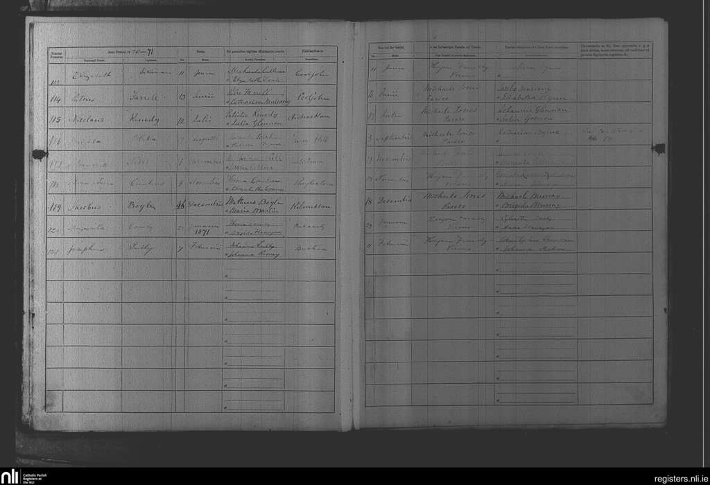 Killeen; County of Meath; Diocese of Meath. Baptisms, June 1870 to Feb. 1871