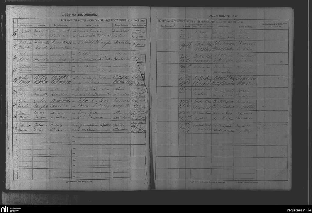 Killeen; County of Meath; Diocese of Meath. Marriages, Feb. 1867 to Nov. 1867