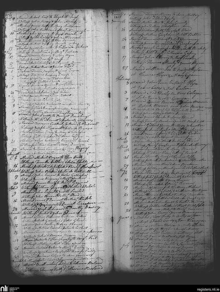 Tullamore; County of Offaly, Westmeath; Diocese of Meath. Marriages, Apr. 1804 to July 1805
