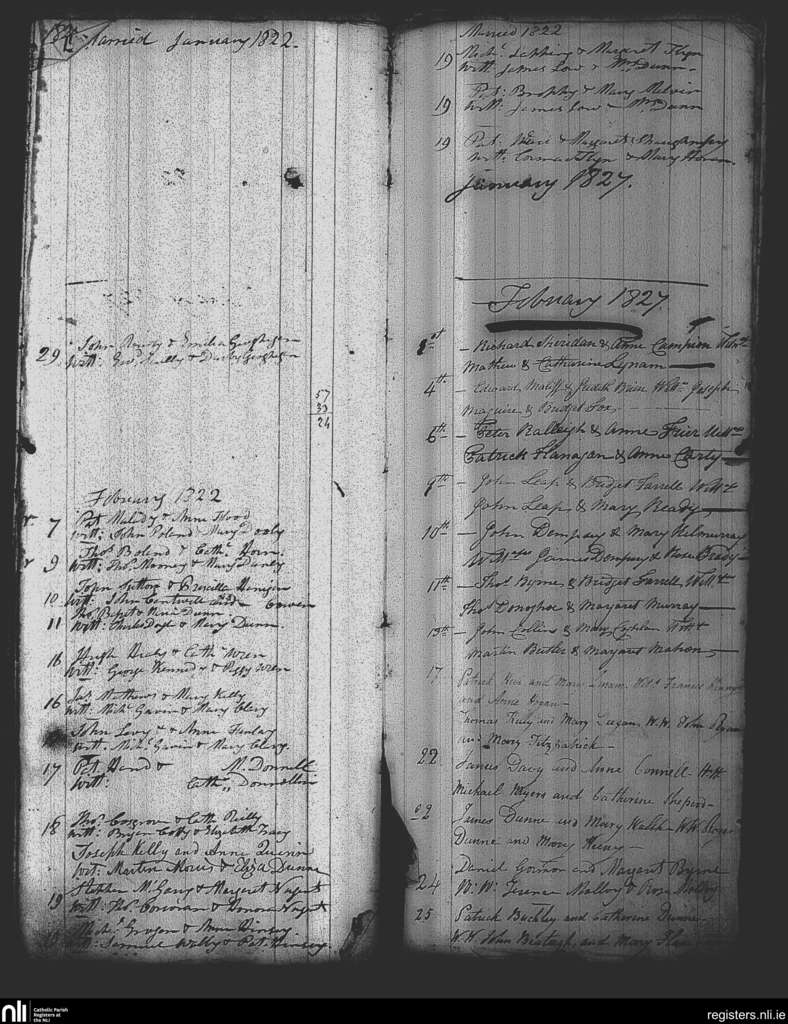 Tullamore; County of Offaly, Westmeath; Diocese of Meath. Marriages, Jan. 1822 to Feb. 1827
