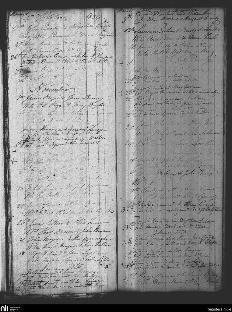 Tullamore; County of Offaly, Westmeath; Diocese of Meath. Marriages, Oct. 1834 to Feb. 1835