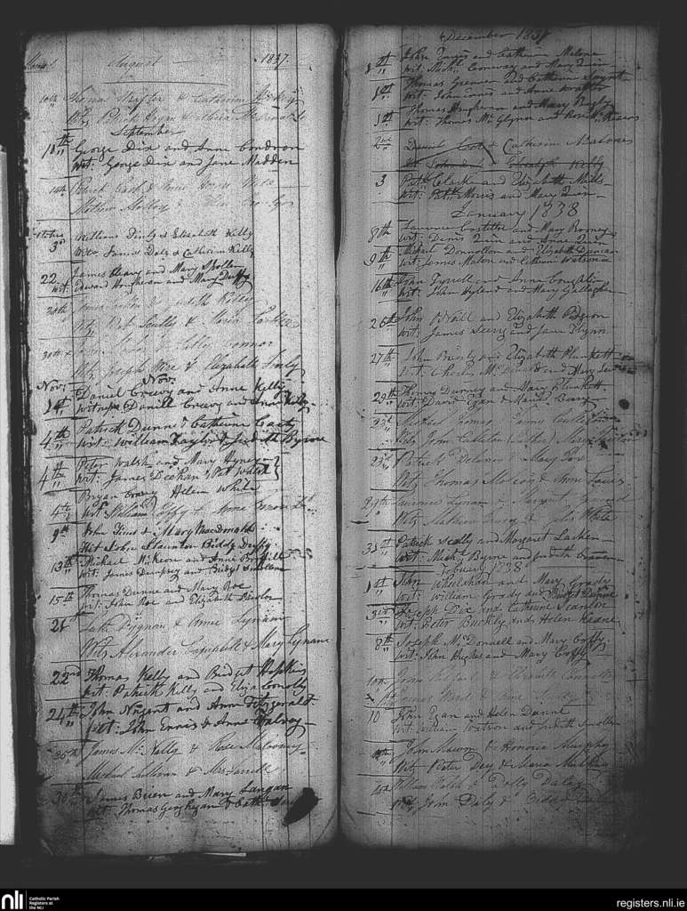 Tullamore; County of Offaly, Westmeath; Diocese of Meath. Marriages, Aug. 1837 to Feb. 1838