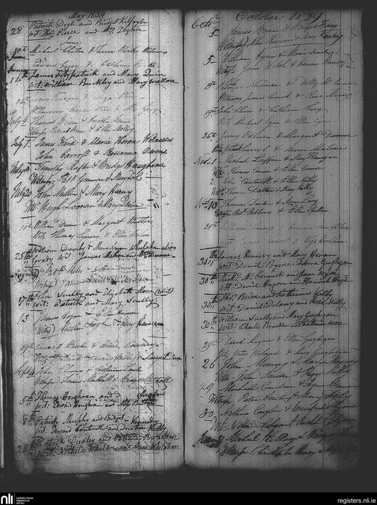 Tullamore; County of Offaly, Westmeath; Diocese of Meath. Marriages, May 1839 to Jan. 1840