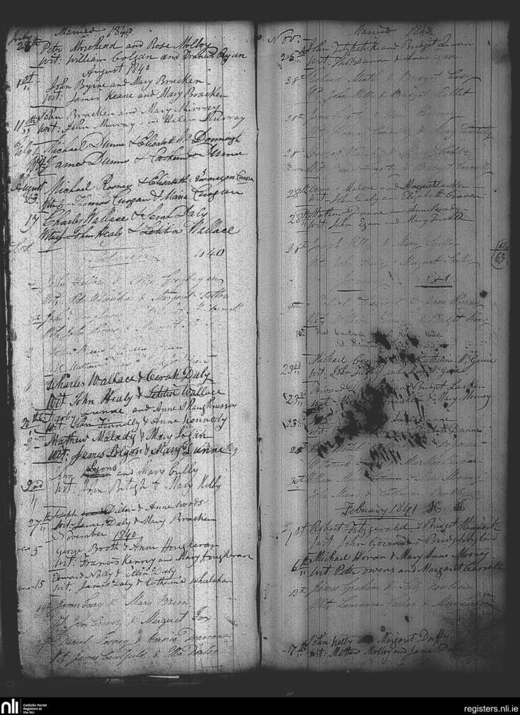 Tullamore; County of Offaly, Westmeath; Diocese of Meath. Marriages, July 1840 to Feb. 1841