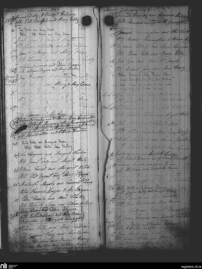 Tullamore; County of Offaly, Westmeath; Diocese of Meath. Marriages, Nov. 1841 to June 1842