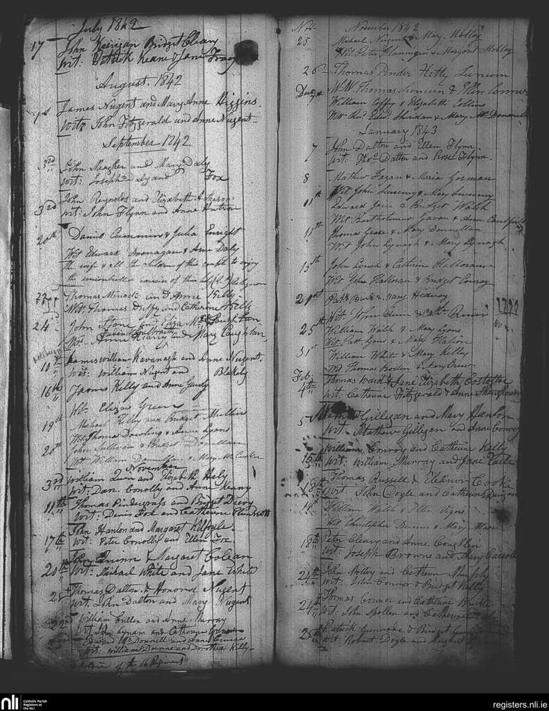 Tullamore; County of Offaly, Westmeath; Diocese of Meath. Marriages, July 1842 to Feb. 1843
