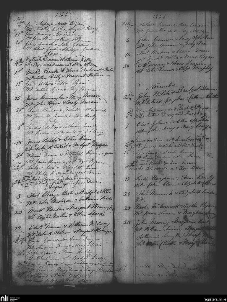 Tullamore; County of Offaly, Westmeath; Diocese of Meath. Marriages, May 1846 to Nov. 1846