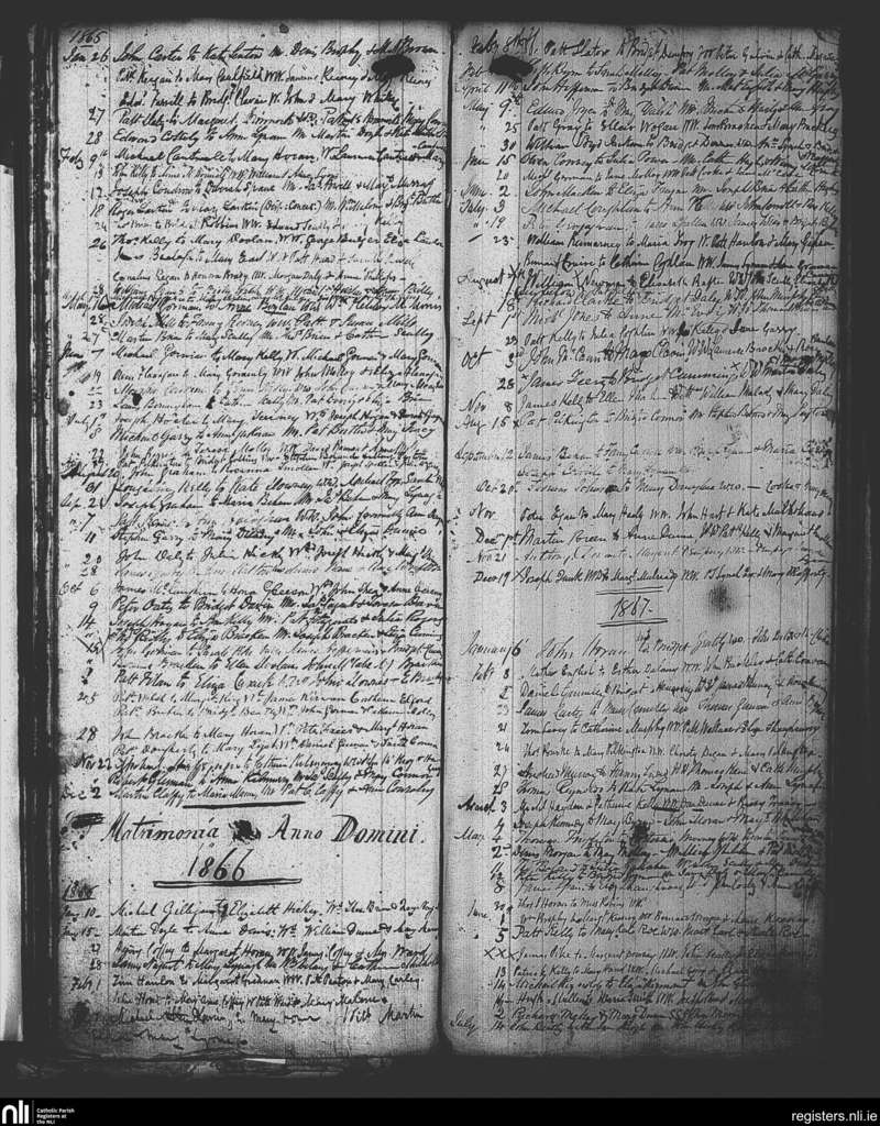 Tullamore; County of Offaly, Westmeath; Diocese of Meath. Marriages, Jan. 1865 to July 1867
