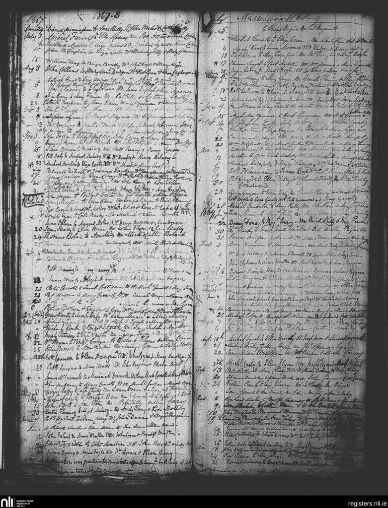 Tullamore; County of Offaly, Westmeath; Diocese of Meath. Marriages, June 1867 to Nov. 1869