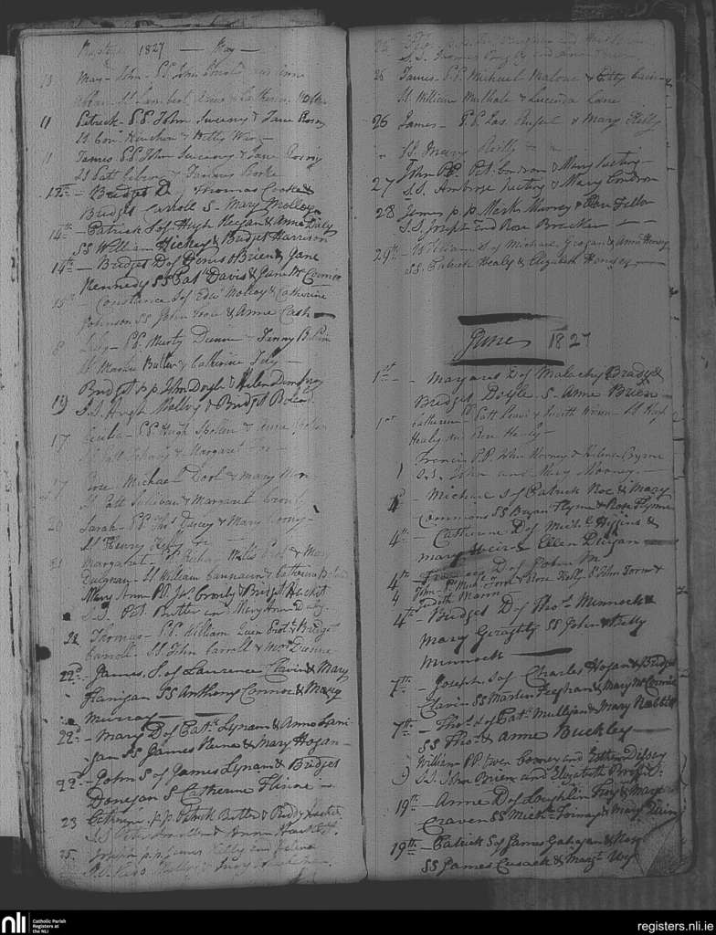 Tullamore; County of Westmeath, Offaly; Diocese of Meath. Baptisms, May 1827 to June 1827