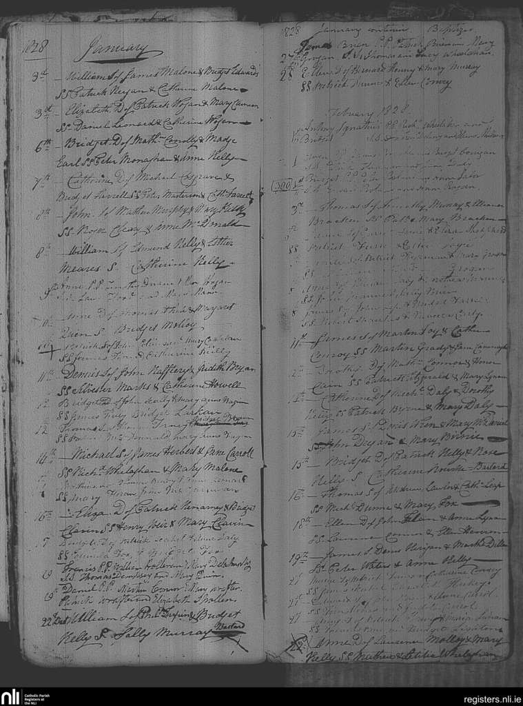 Tullamore; County of Westmeath, Offaly; Diocese of Meath. Baptisms, Jan. 1828 to Feb. 1828