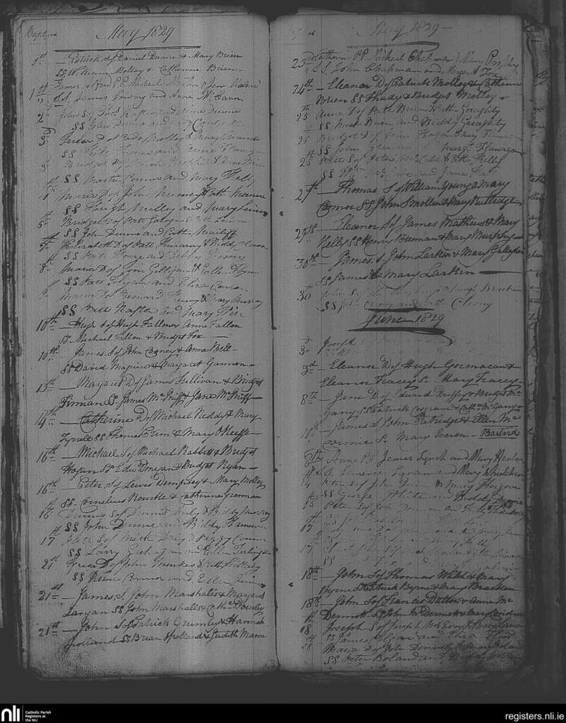 Tullamore; County of Westmeath, Offaly; Diocese of Meath. Baptisms, May 1829 to June 1829