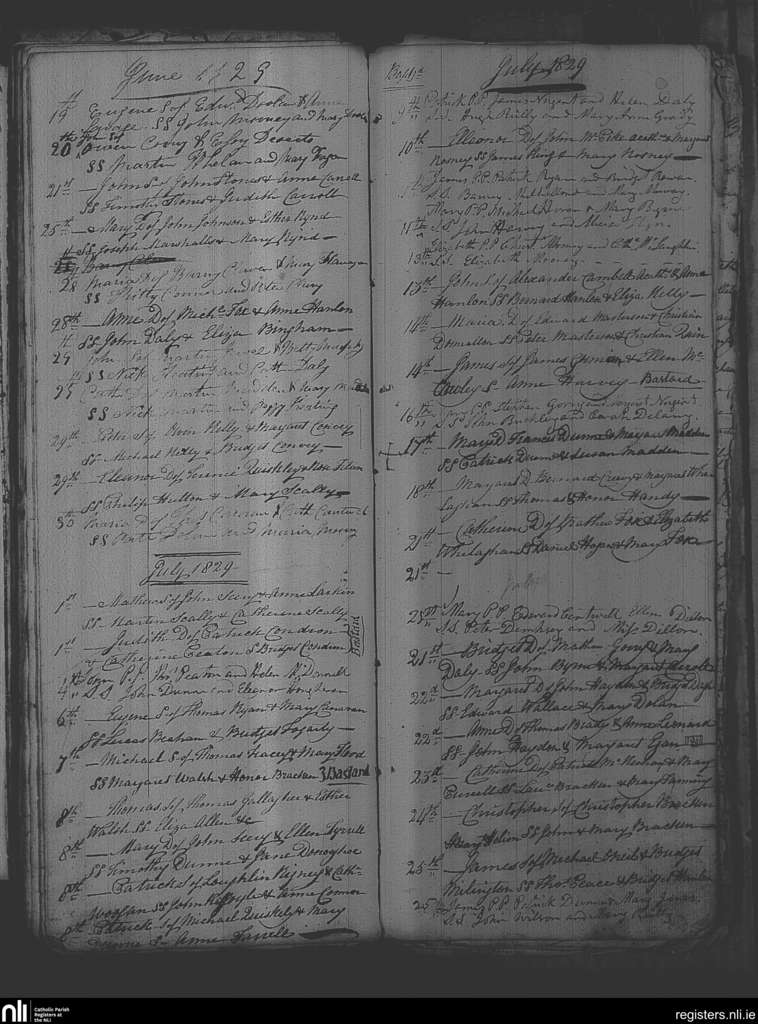 Tullamore; County of Westmeath, Offaly; Diocese of Meath. Baptisms, June 1829 to July 1829