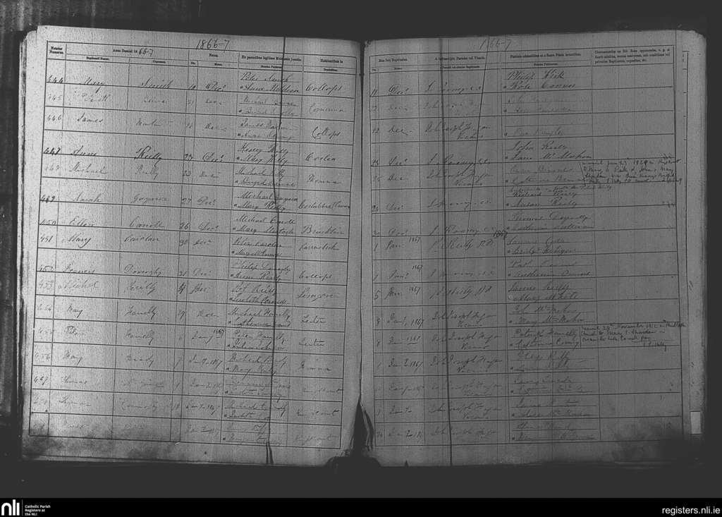 Kingscourt; County of Cavan, Meath; Diocese of Meath. Baptisms, Dec. 1866 to Jan. 1867