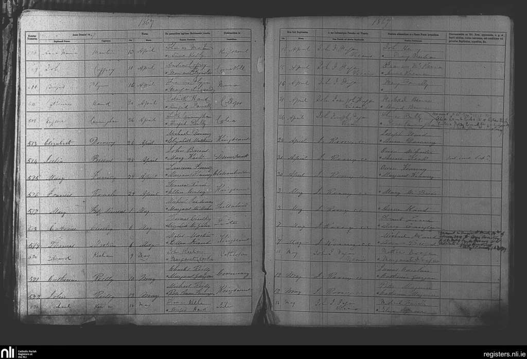 Kingscourt; County of Cavan, Meath; Diocese of Meath. Baptisms, Apr. 1867 to May 1867