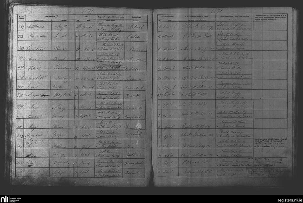Kingscourt; County of Cavan, Meath; Diocese of Meath. Baptisms, Mar. 1871 to Apr. 1871