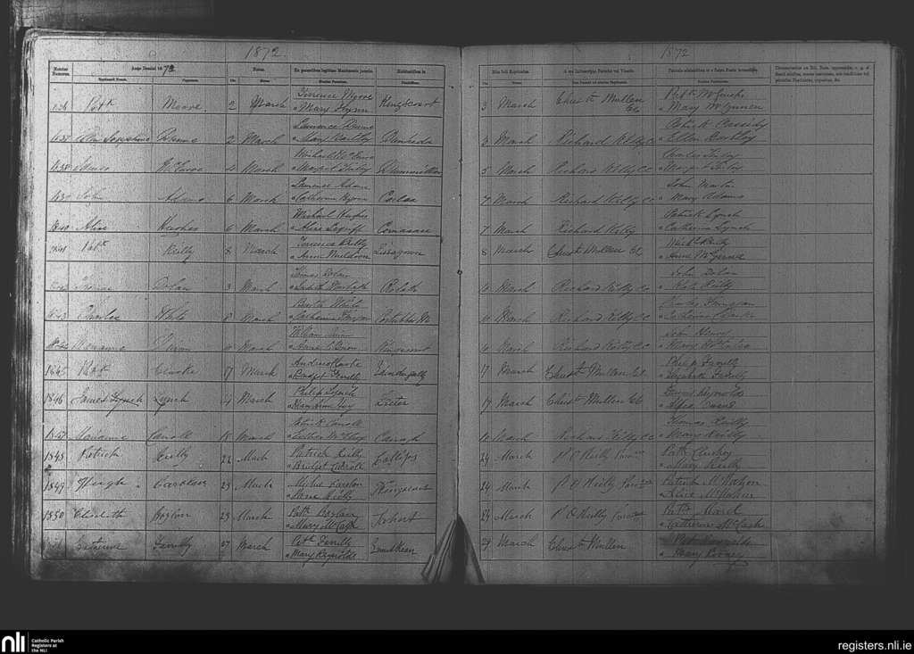 Kingscourt; County of Cavan, Meath; Diocese of Meath. Baptisms, Mar. 1872